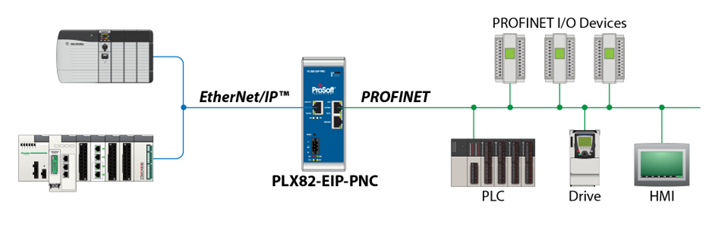 The PLX82-EIP-PNC gateways are stand-alone DIN-rail mounted units